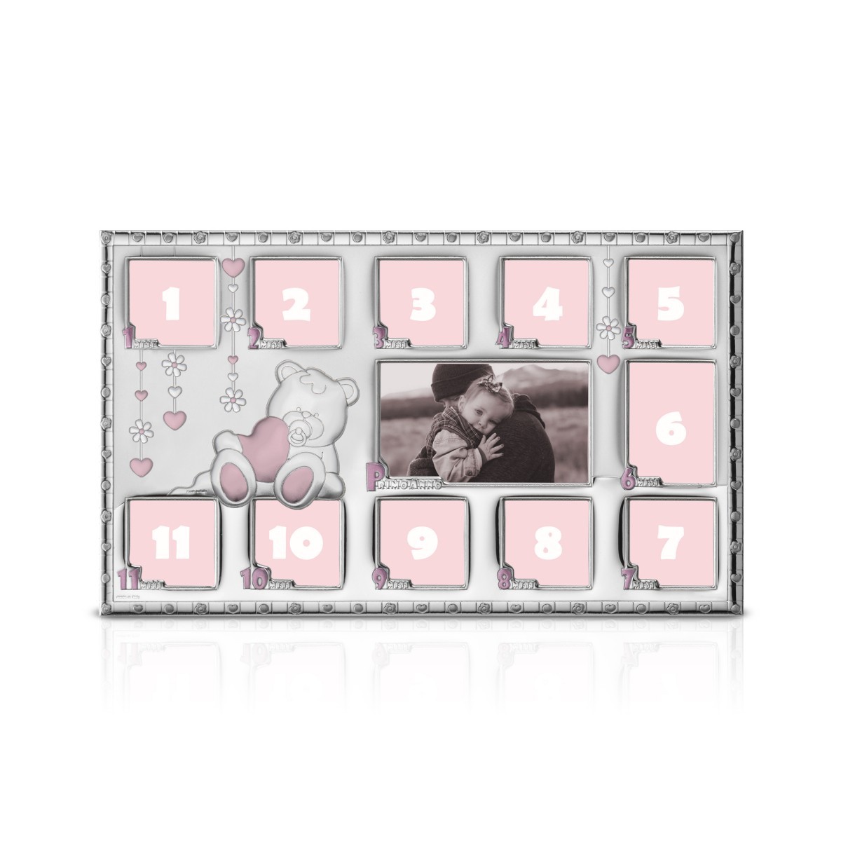 Marco fotos personalizado primer año rosa oso corazon 31x19