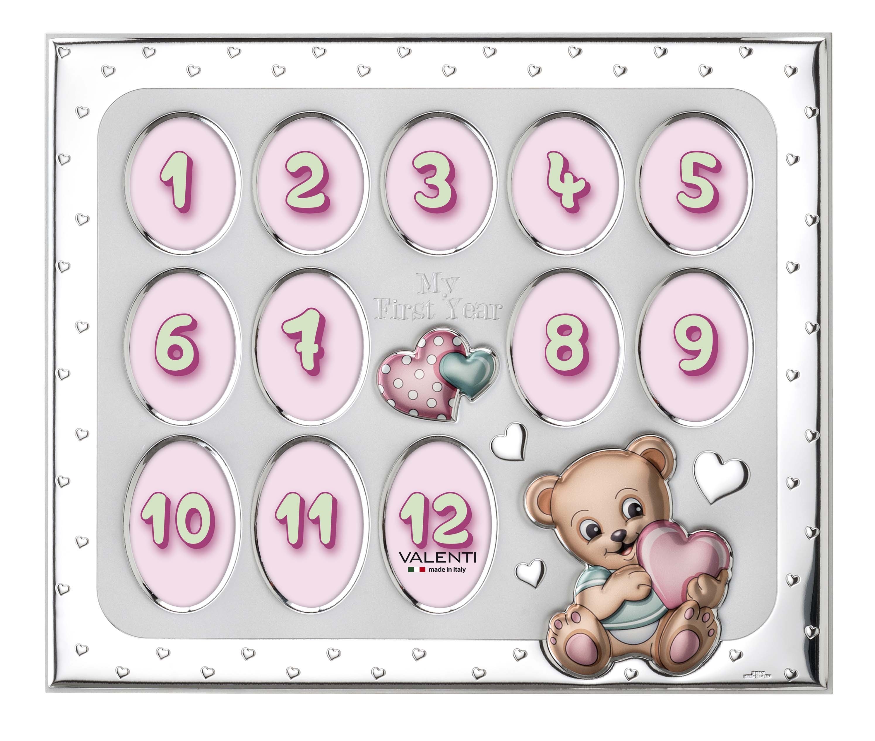 Marco fotos personalizado primer año oso corazon 31x25.5 celeste